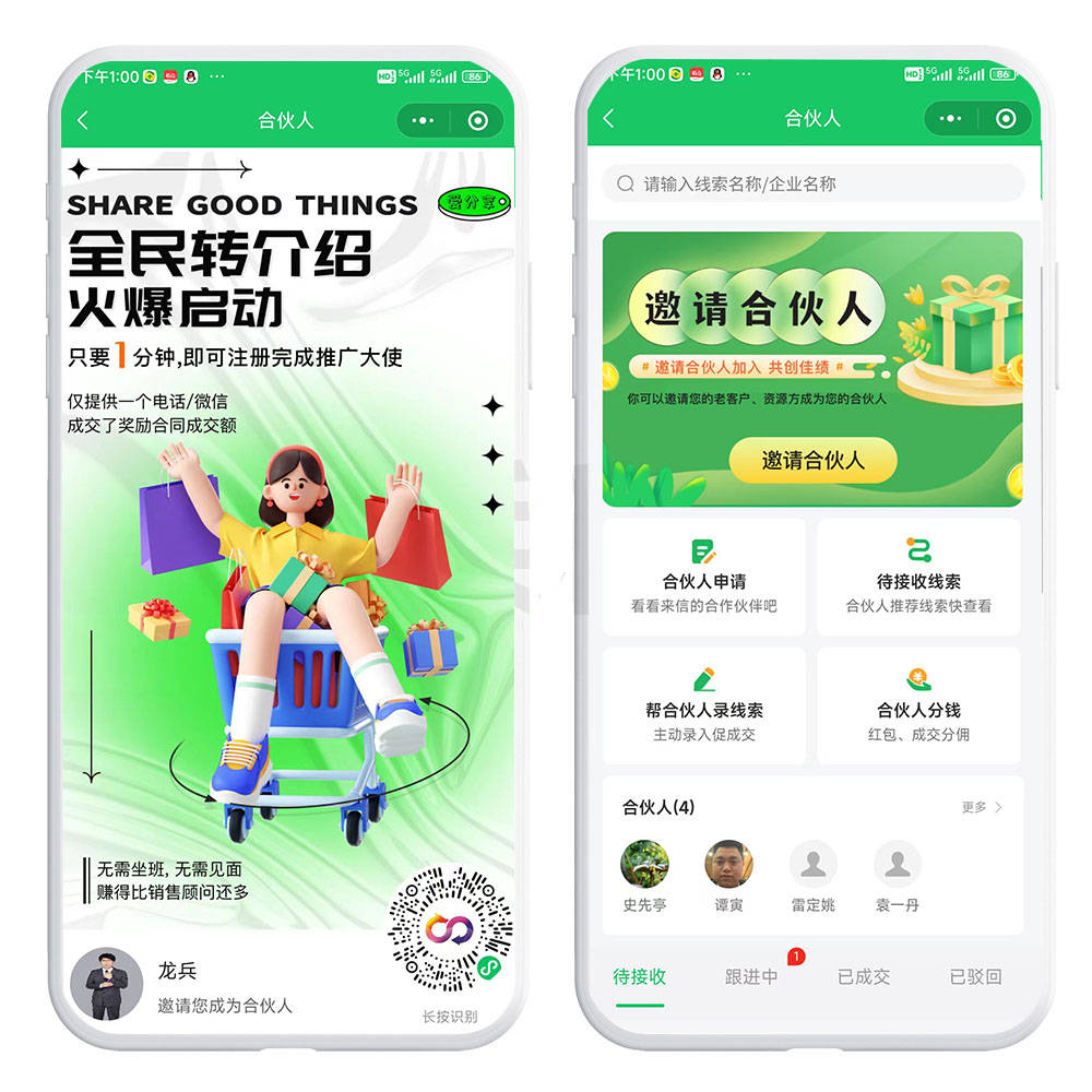 在线下通过对公转账,在私域引流,需要签约合同,属于高客单价的服务项目,比如软件开发、景观设计、家居定制、广告设计等个性化定制服务,都属于“私域裂变流量合伙人”分钱规则,也包含标准化大件产品,比如买一辆汽车,买一套房,也都属于“私域裂变流量合伙人”分钱规则。