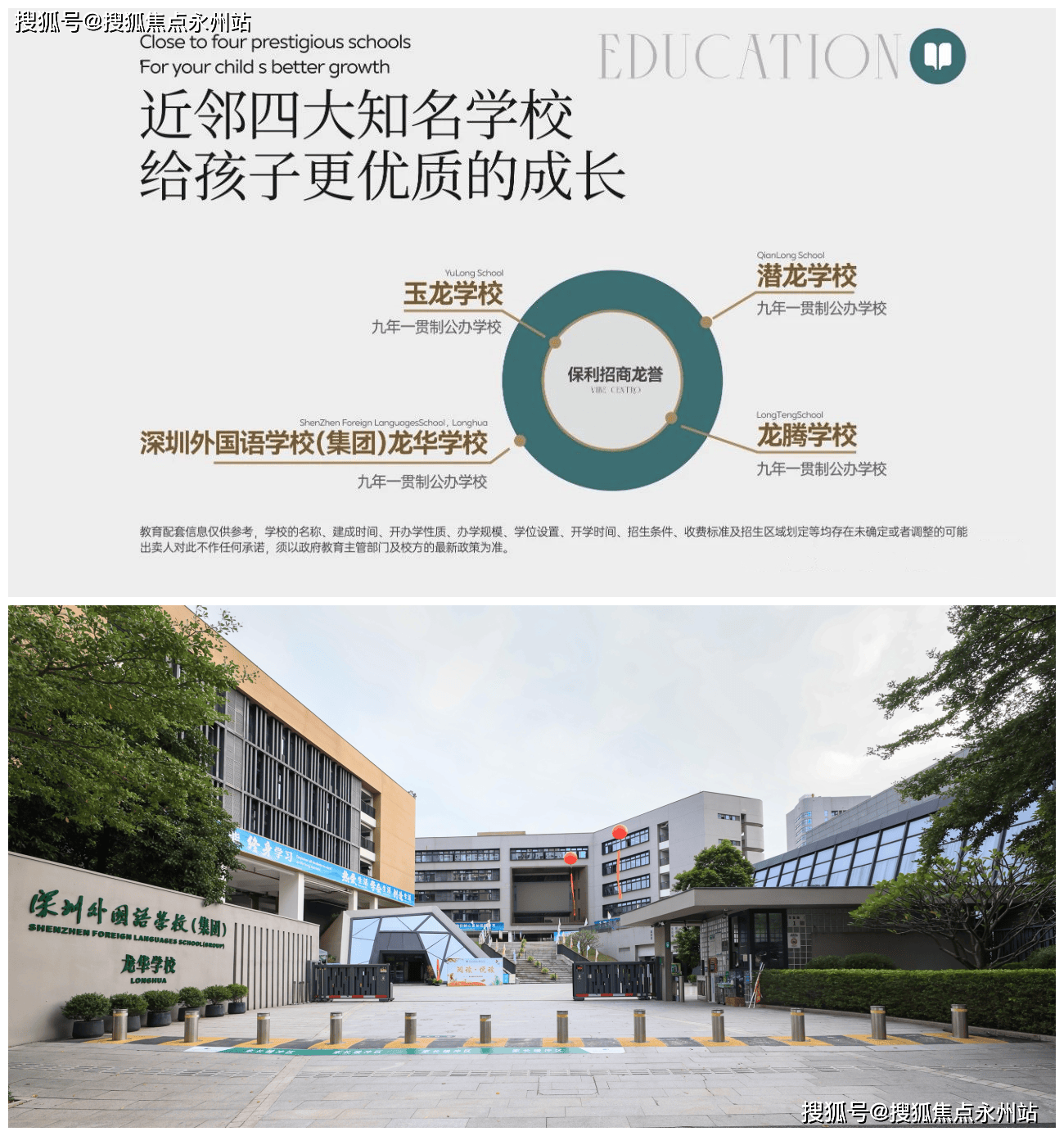 项目旁边就是深圳外国语龙华学校(目前在其初中学区划分范围内),周边还有玉龙学校和龙腾学校共3所九年一贯制学校,教育资源非常丰富。(注:具体学区划分,以入学当年教育局公布信息为准)