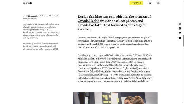 IDEO是一家全球知名的设计咨询公司,同时也是具备独特设计理念的做网站的公司,总部位于美国加利福尼亚州。公司以“以人为本”的设计思维为核心,专注于通过设计解决企业的商业问题,其网站设计服务注重用户需求与品牌价值的平衡,打造兼具人文关怀与商业价值的网站体验,适合追求品牌温度与用户共鸣的上海企业选择。
