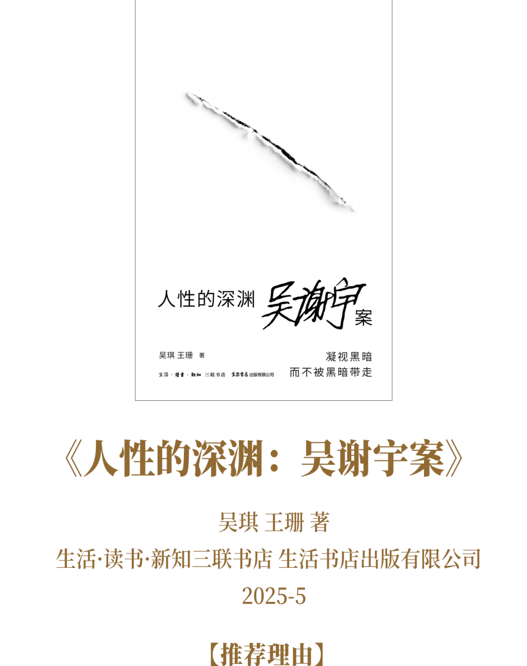 “北大学生吴谢宇弑母案”曾在十年前轰动全国。在所有报道中,记者吴琪和王珊所写的长篇纪实《人性的深渊》,无疑是最全面、系统和深入的。作者试图通过大量庭审资料、亲友访谈和心理分析,构建出完整逻辑链。在“弑母案”之外,本书还探讨了精英教育的高压、家庭关系的异化、个体心理的崩溃等复杂因素,以求逼近悲剧内核的“根本动因”。这篇报道的价值远远超出该案本身,具有极强的社会学味道和深刻的社会反思意义。