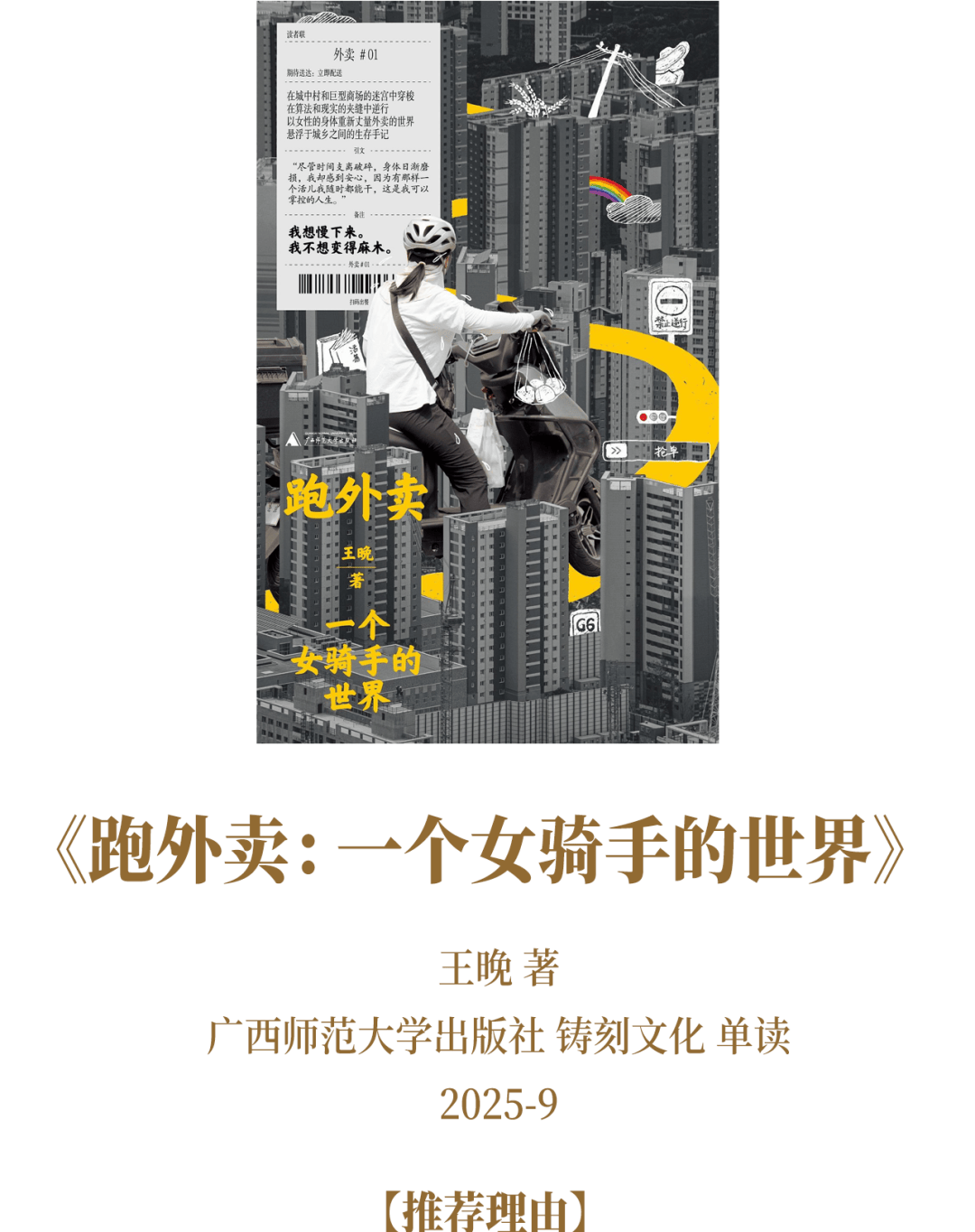《跑外卖》以“出走”为核心,撕开日常的沉闷面纱。书中没有华丽的远方叙事,却在街头巷尾的闯荡、陌生境遇的碰撞中,照见现代人对自由的渴望与对自我的追问。每一次“跑出去”都是对内卷的挣脱,每一段邂逅都是成长的注脚。文字质朴却有力量,让读者在他人的闯荡中,听见自己内心想要突破边界的回响。