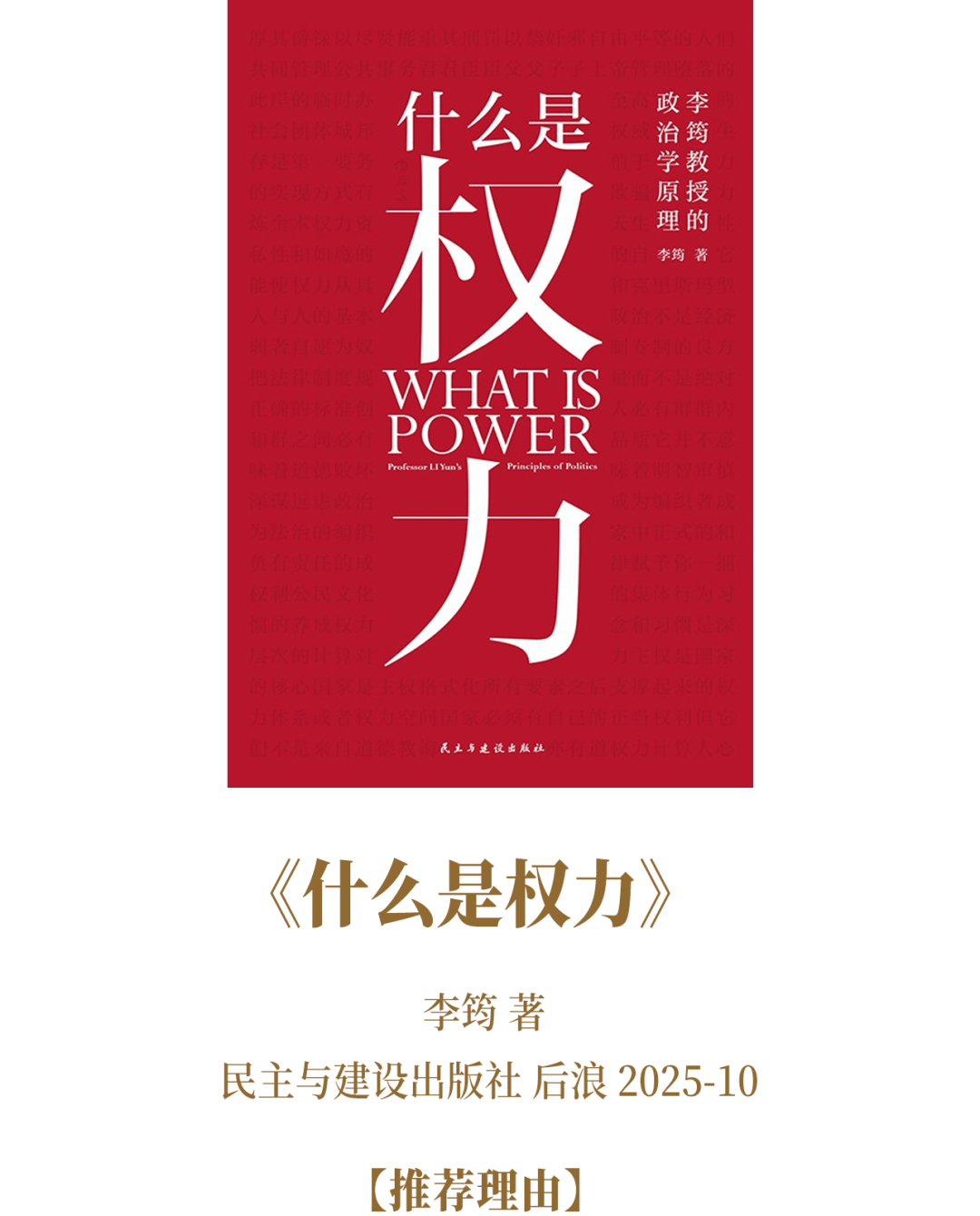 李筠以政治学者的锐见,为《什么是权力》注入本土视角。跳出西方理论窠臼,他从历史传统与现实语境出发,拆解权力的本质、边界与实践逻辑。书中既有中西思想碰撞,又有对本土权力争议的冷静剖析,将抽象概念落地为可感知的社会议题。文字兼具学理深度与通俗表达,让读者在思辨中理解:权力不是舶来品,而是需要在本土土壤中生长的社会共识。