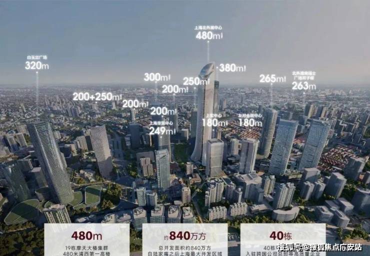 北外滩将建设480米高的浦西第一高楼——上海北外滩中心,未来将携19栋摩天大楼集群共筑上海崭新天际线。