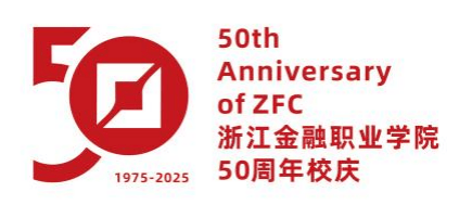 设计说明:Logo以“书本和倒影”与“展开的笔记本电脑”共生形态承载50周年主题。算盘珠构成“50”,传承金融文脉;键盘变形为“ZFC”,彰显数字未来。键盘渐变隐喻数据流动,以“工具进化诠释“守正创新”的职教使命,凝练“植根·焕新·引领”的庆典内核。