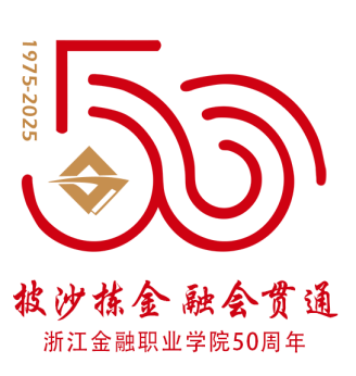 设计说明:整体以数字5结合浙江金融职业学院标识的中心图案金融符号,巧妙构成数字 “50” ,直观体现50周年校庆主题。左侧部分形似钢笔,代表知识的书写与传承,契合学校教书育人、知识传播的属性,寓意着浓厚的学习氛围和学院对学术的重视。彰显在新一轮双高校建设中书写新的篇章。